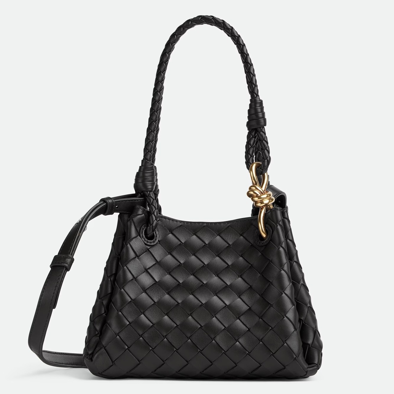 Bottega Veneta Parachute Small Bag in Black Intrecciato Lambskin