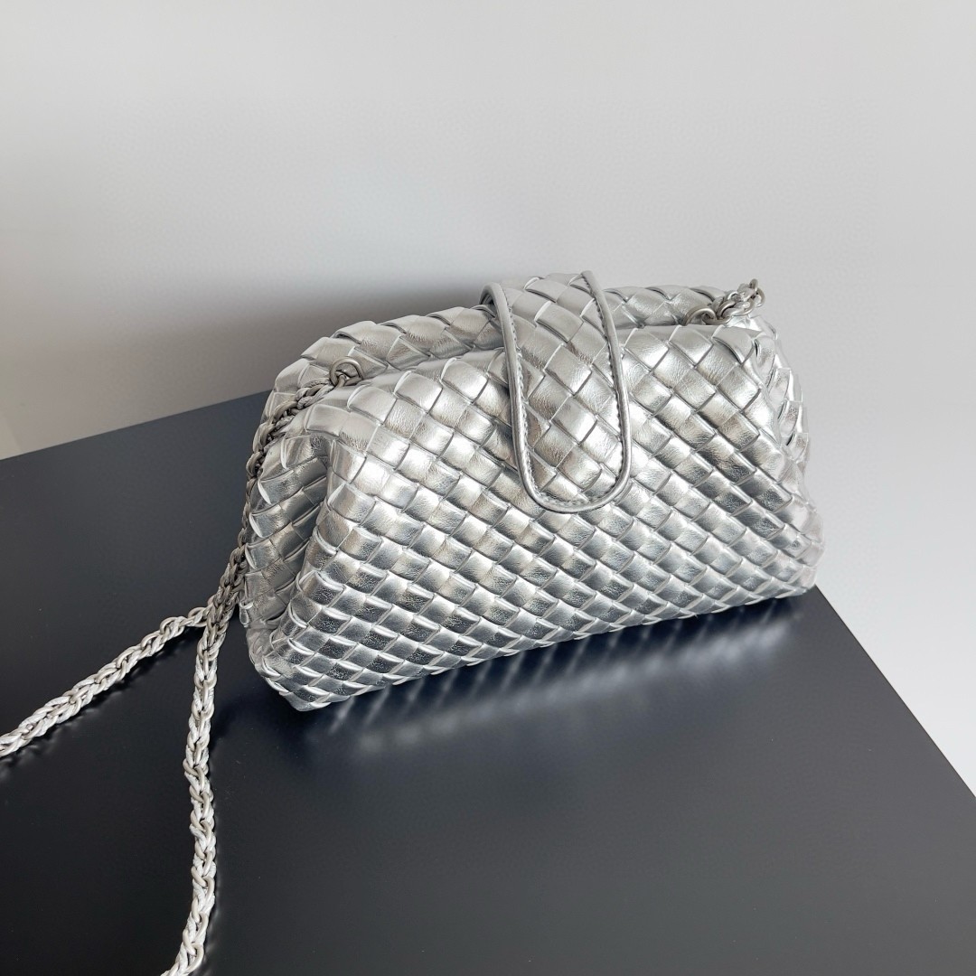 Bottega Veneta Small Lauren 1980 Bag in Silver Intrecciato Lambskin