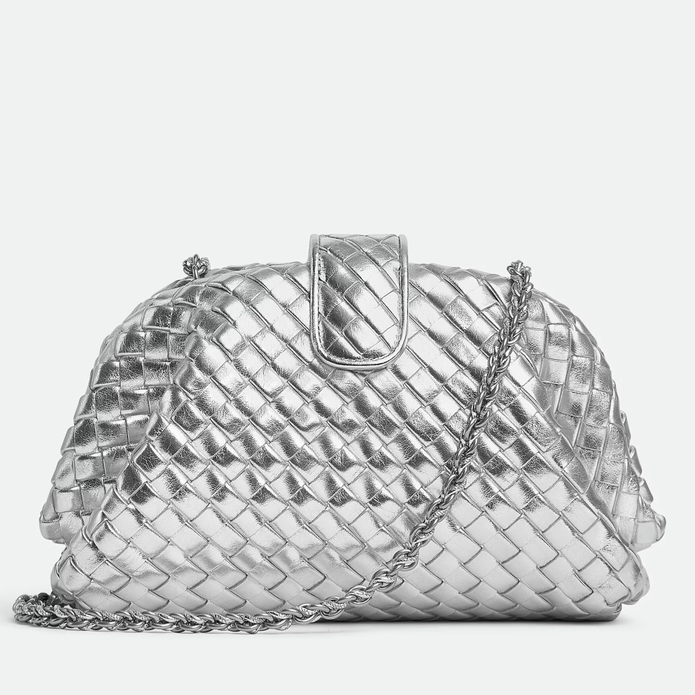 Bottega Veneta's signature intrecciato weave is so recognizable that it operates in the same way as a logo. This small clutch has been expertly crafted from Metallic lambskin and has a softly structured shape that'll fit your phone, keys and cardholder. Sling the chain strap over your shoulder when you're working the room at events.
