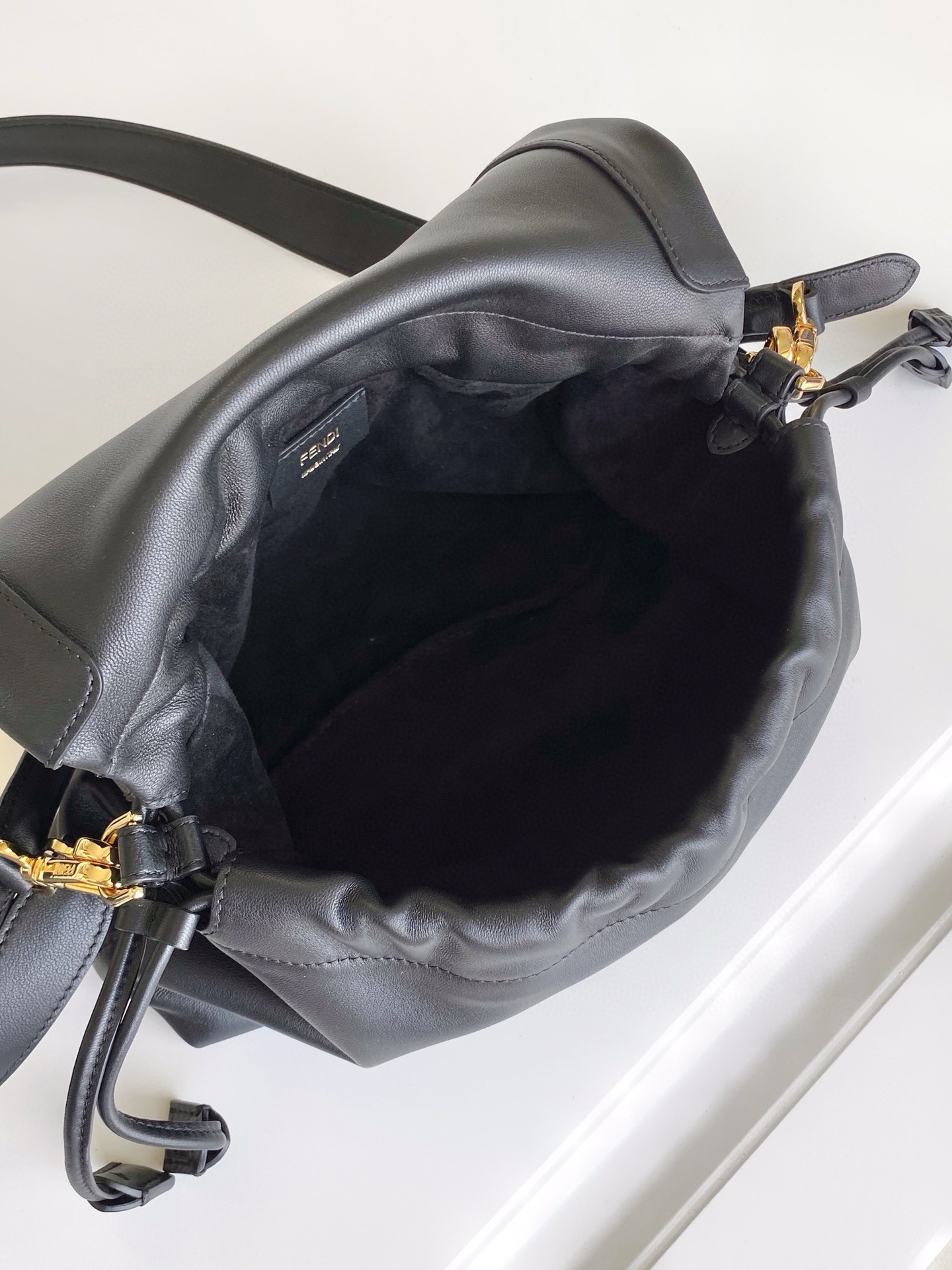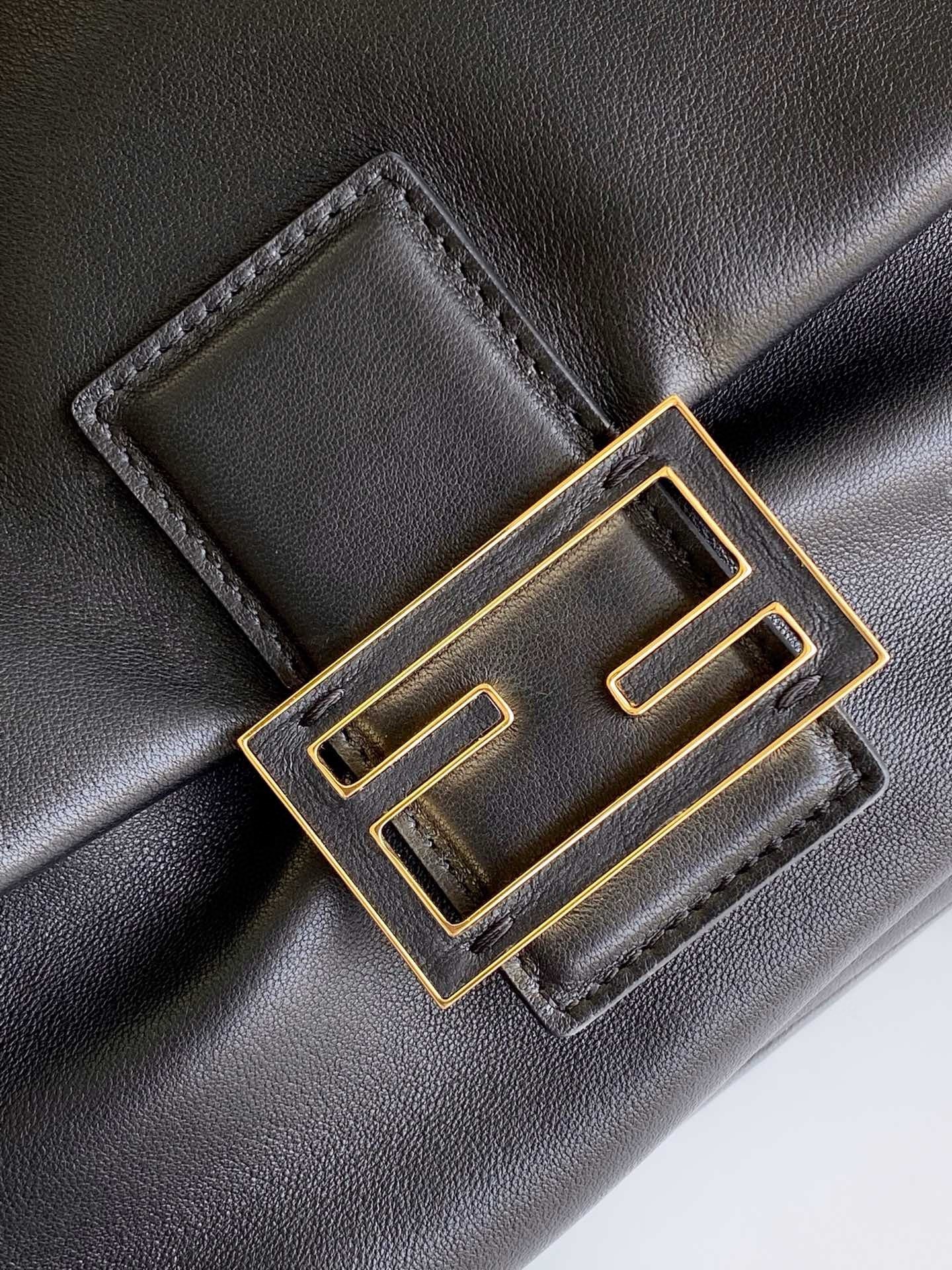 Fendi Mamma Baguette Medium Bag in Black Nappa Leather