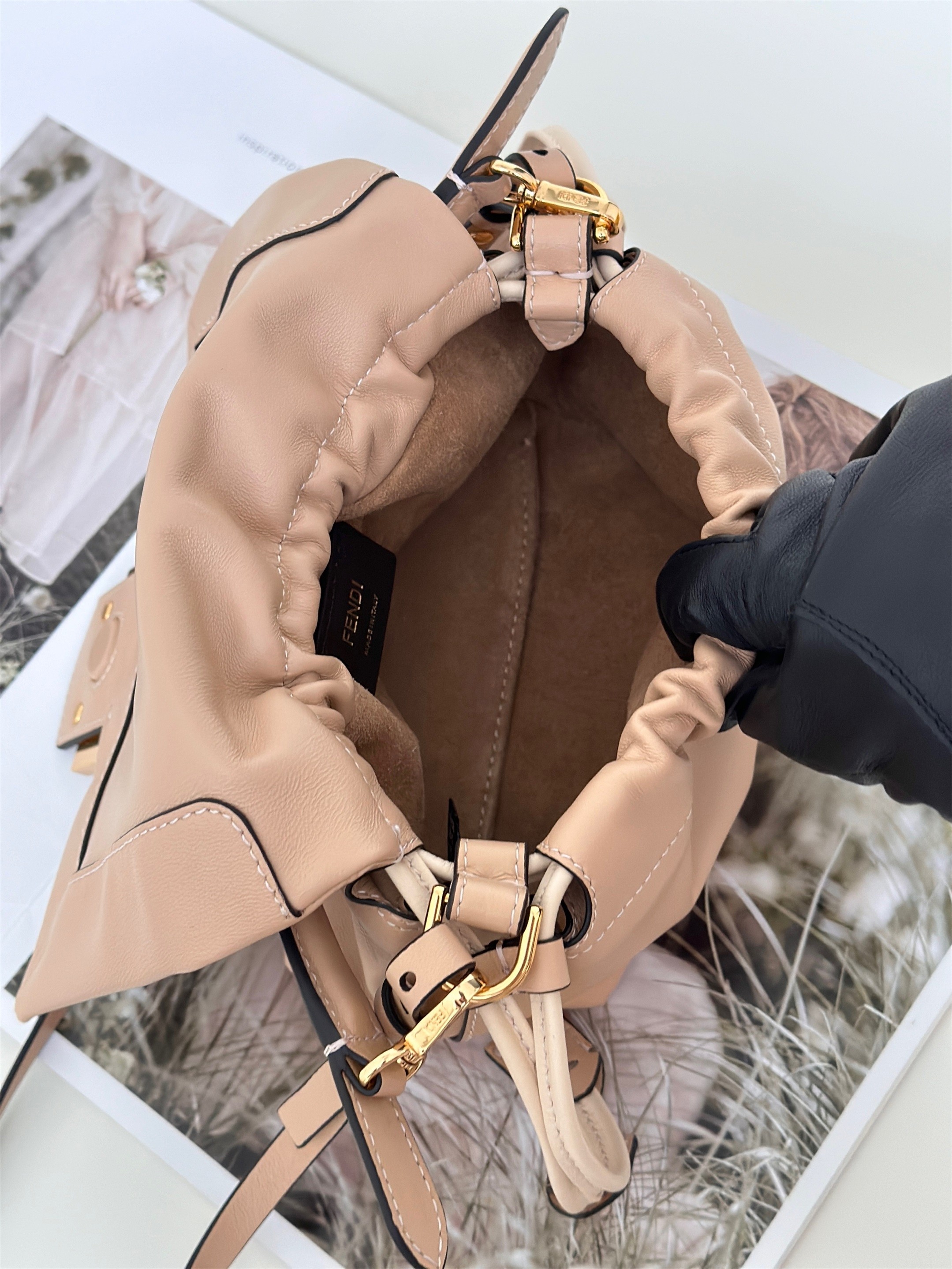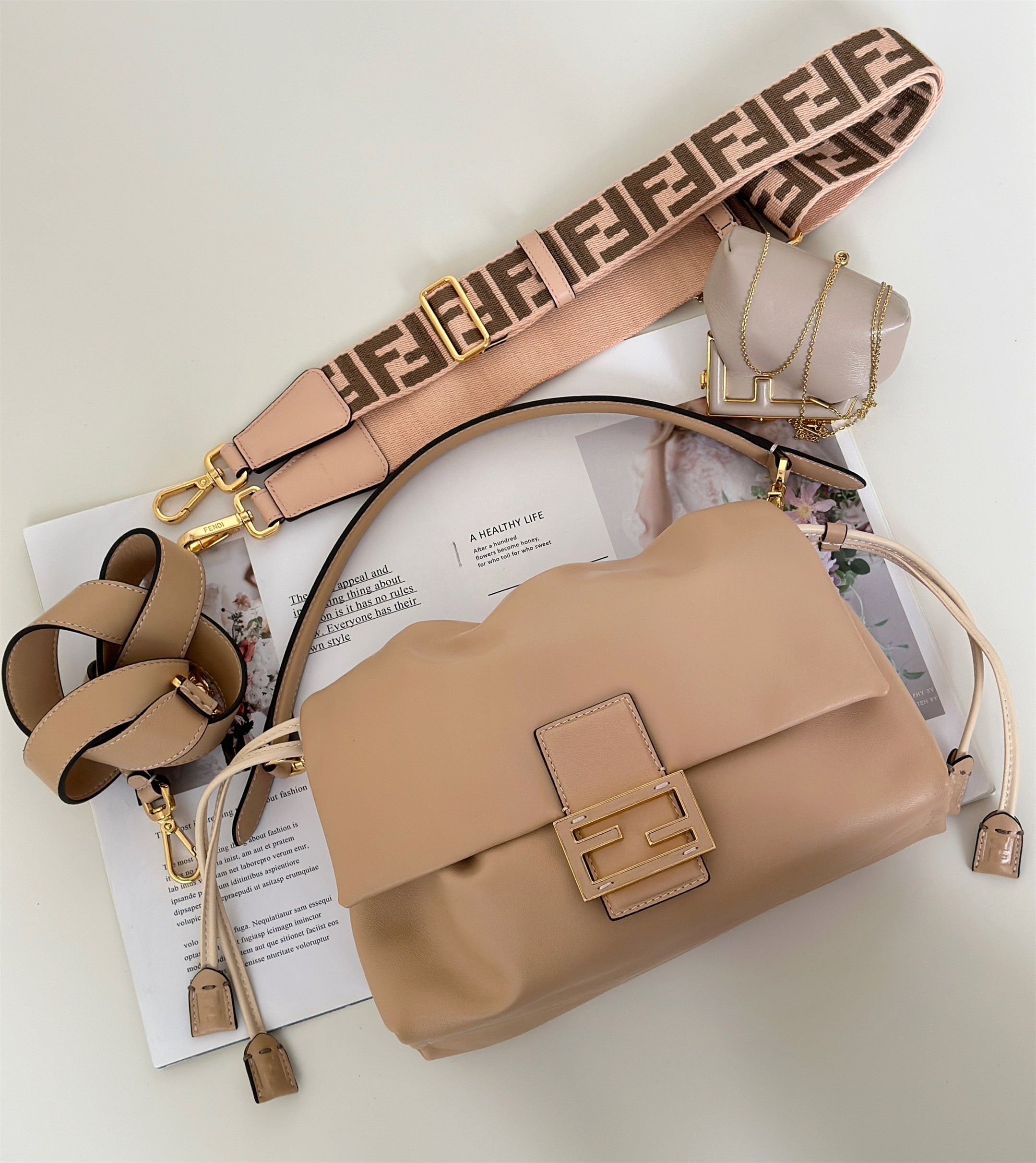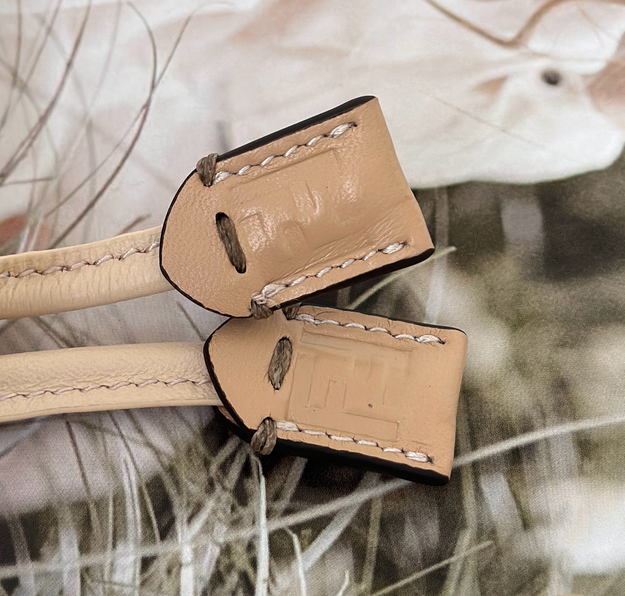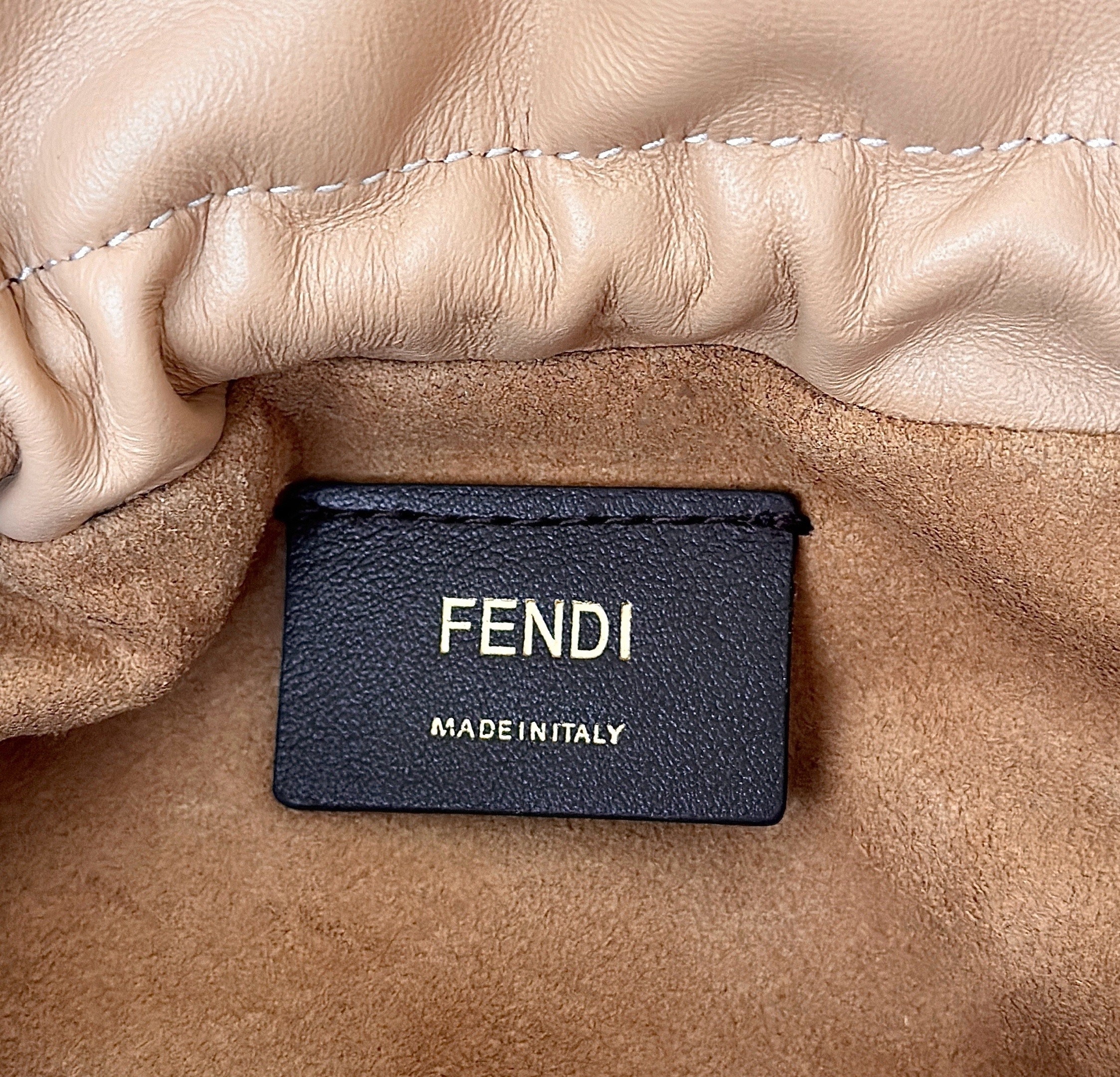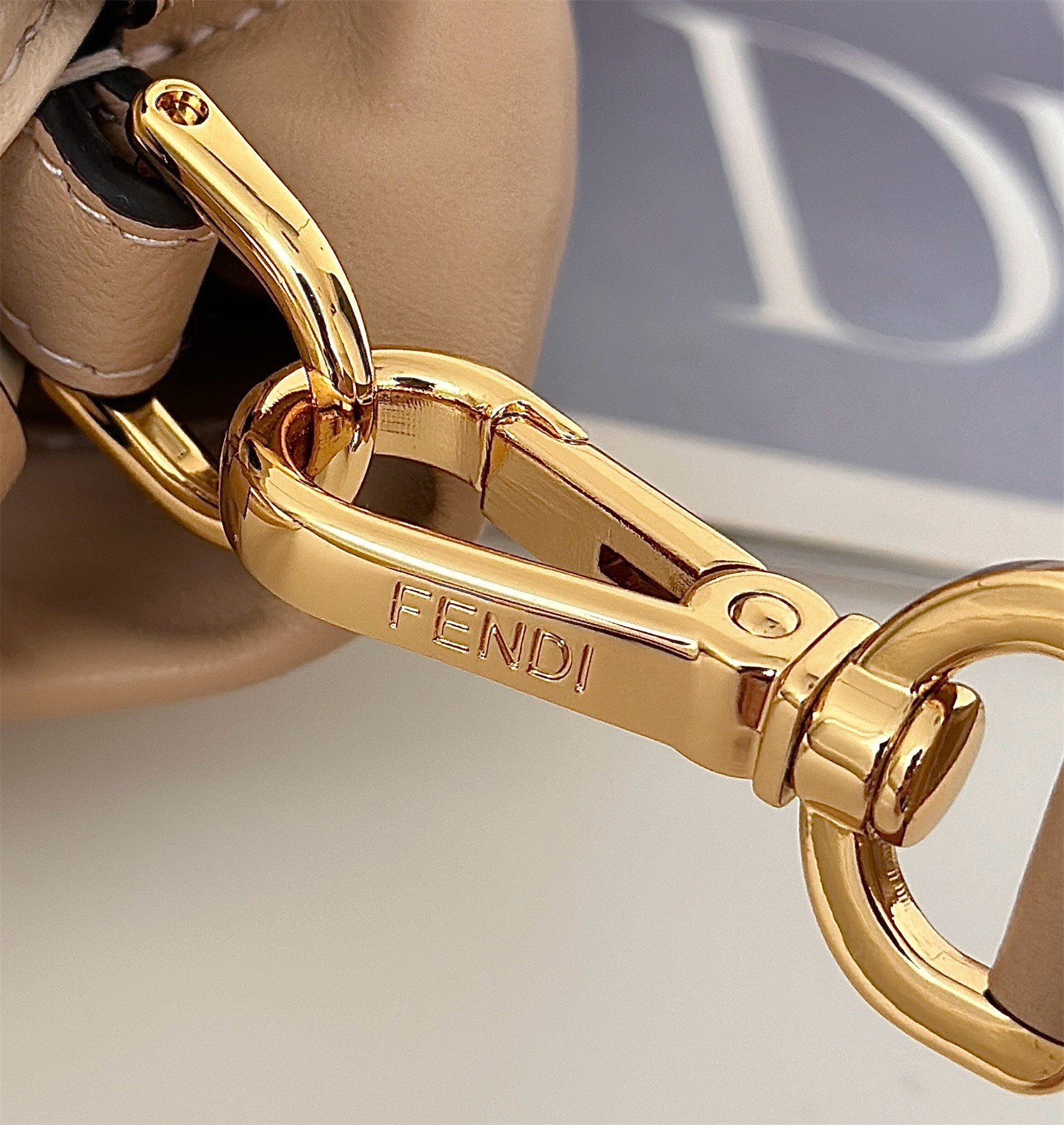 - Metal FF clasp with tone-on-tone leather insert