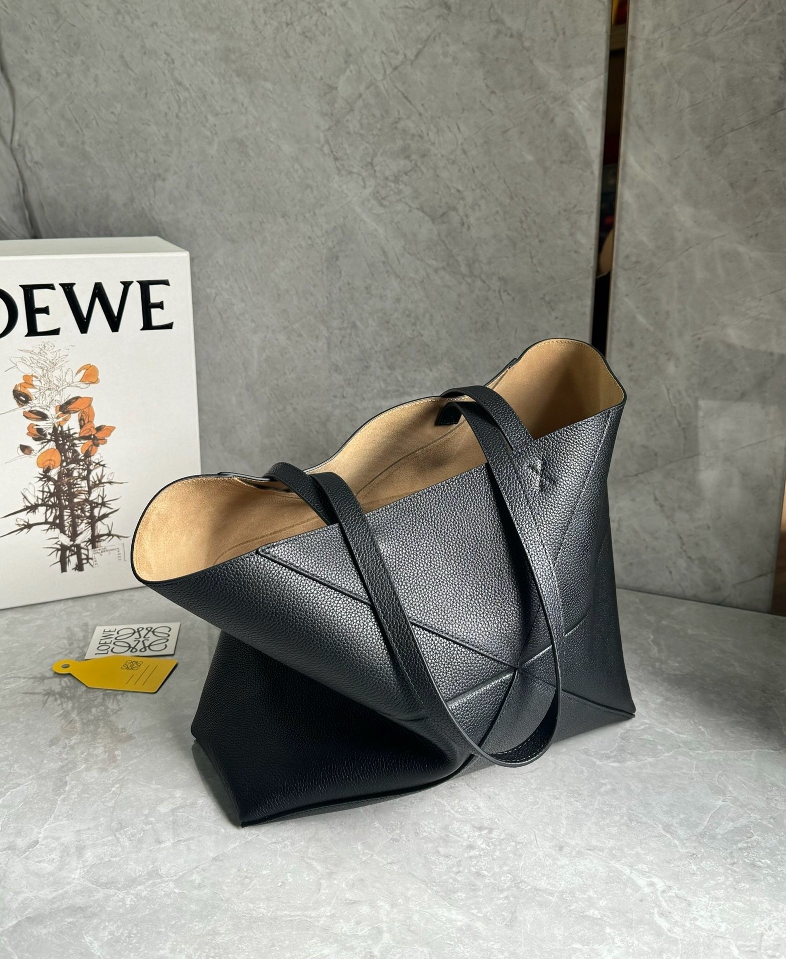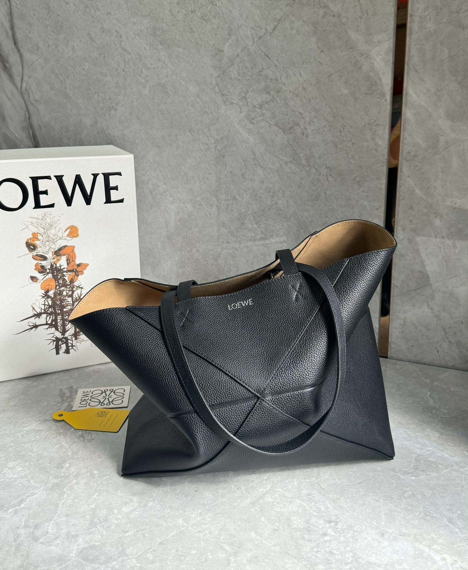 Loewe Medium Horizontal Puzzle Fold Tote Bag in Black Grained Leather