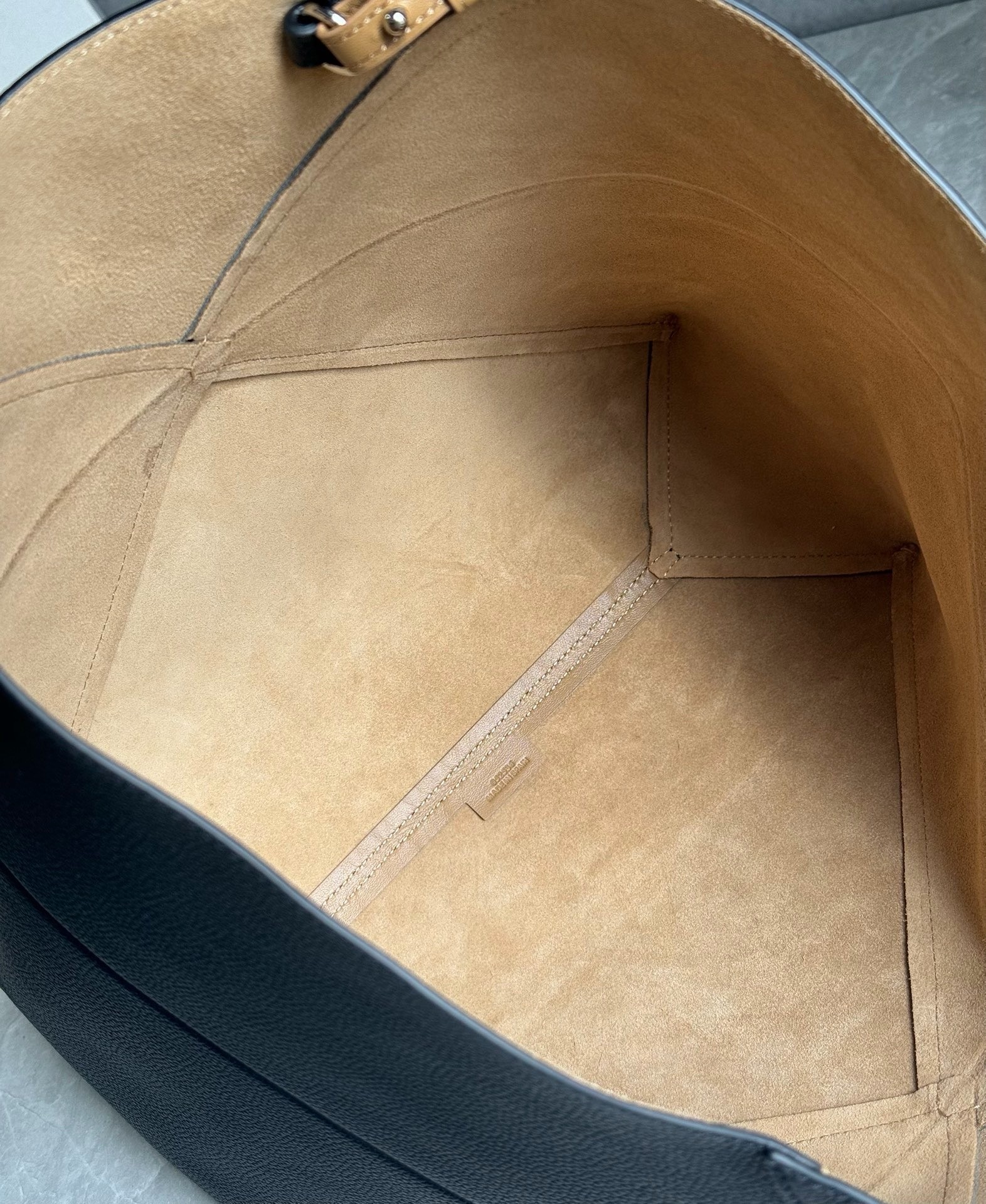 - Detachable inside zipped suede pocket