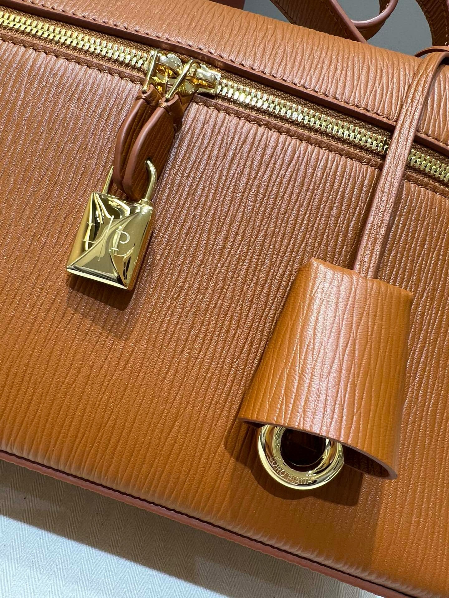 Loro Piana Extra Bag L27 in Tan Calfskin