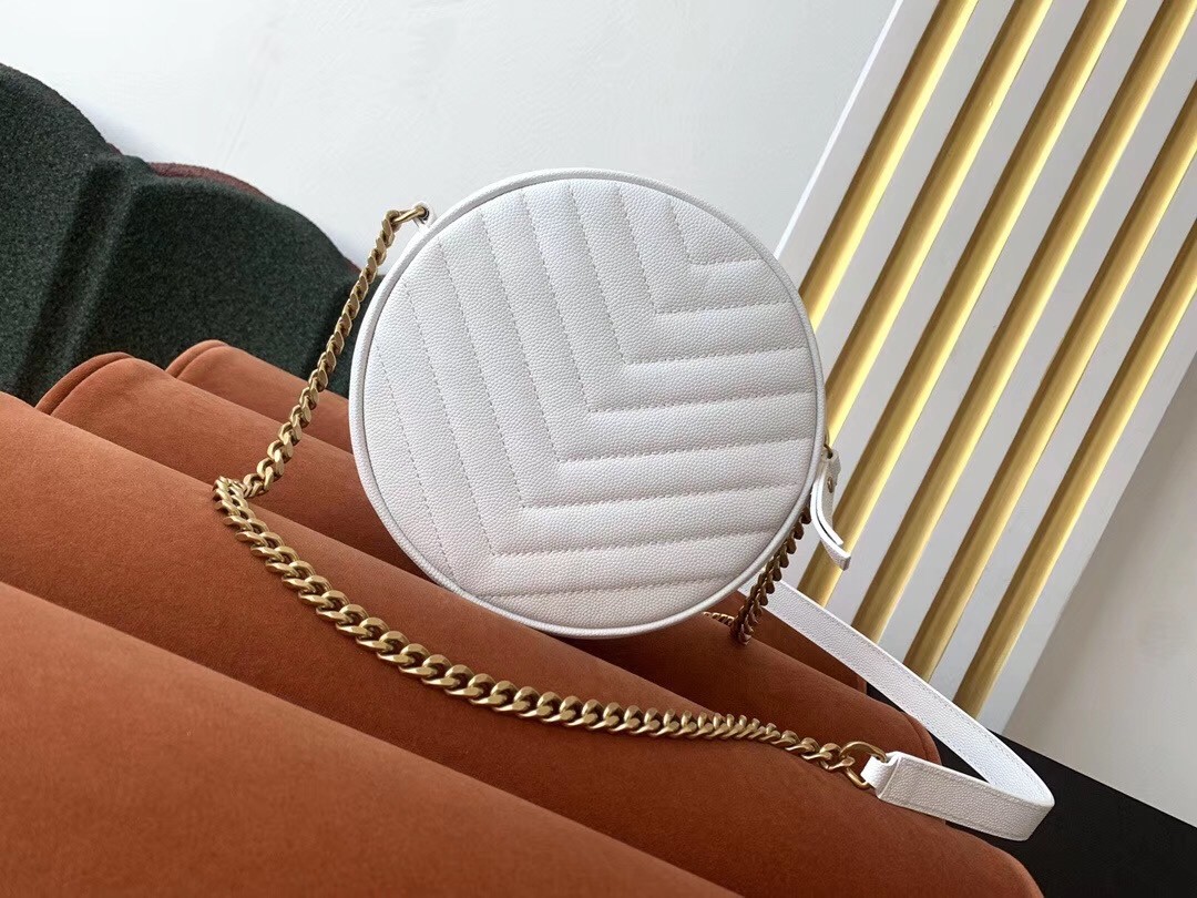 Saint Laurent Vinyle Round Camera Bag In White Grained Leather