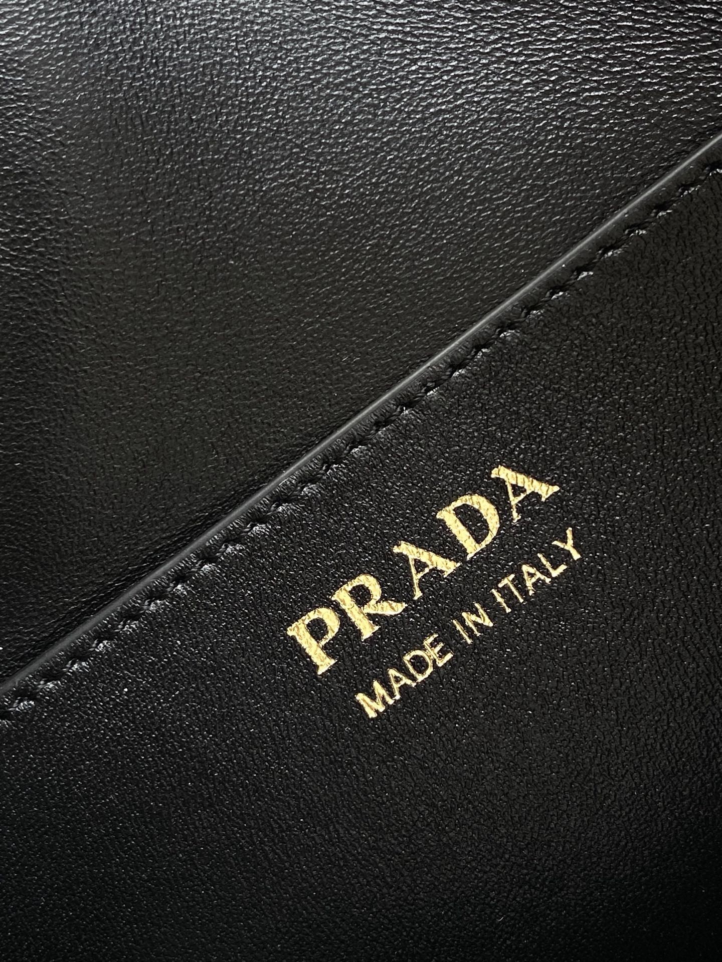Prada Buckle Bucket Bag is designed to be functional and practical. The Buckle is not only made to be a functional closure but also as a central decoration motif. Crafted from premium leather, this elegant yet functional bag features a leather handle with an adjustable drop for comfortable shoulder carrying. The lettering logo stamped on the front maintains Prada’s signature minimalist aesthetic.